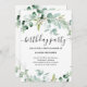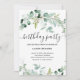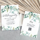 Cette invitation à la fête d'anniversaire branchée présente une élégante verdure d'eucalyptus aquarelle, avec beaucoup de feuillage, des feuilles verts et des branches. Elles décorent un arrière - plan blanc simple avec une typographie de script moderne. Le dos de la carte a une tache pour un code QR scannable afin que les invités peuvent facilement rsvp. La meilleure façon de célébrer avec des amis et des familles invitations!