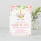 Unicorn Anniversaire Parties scintillant d'or Invitations - décoré de parties scintillant d'or et de fleurs d'aquarelle.