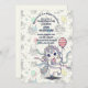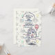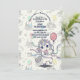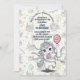 Invitation d'anniversaire à thème lunaire avec une mignonne licorne avec un ballon, une bordure de style vintage et des gribouillis dessinés à la main de châteaux, étoiles et cadeaux. Des couleurs pastel douces donnent le ton d'une fête étincelante et magique.