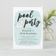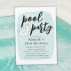 Invitation à l'anniversaire de la piscine pour les filles avec un modèle de flotteur gonflable à licorne. Modèle modifiable avec l'âge de n'importe quel enfant et un pastel pastel aqua bleu arrière - plan.