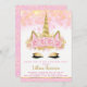 Invitation Unicorne d'or rose fête d'anniversaire