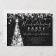 La conception élégante d'invitation de partie de pendaison de crémaillère de vacances avec l'arbre de Noël argenté allume le motif, le nom et la date faite sur commande et le texte supplémentaire