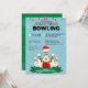 Invitation de la partie de bowling de Noël de Noël. Rejoignez-nous pour une fête de bowling festive ! Cette invitation présente un design amusant avec des chapeaux de Père Noël sur une épingle de bowling et des bois de rennes sur une boule de bowling rouge, le tout contre un arrière - plan enneigé rempli de flocons de neige. L'avant de la carte a un arrière - plan bleu clair, tandis que l'arrière est vert. N'hésitez pas à personnaliser l'invitation avec vos informations. N’oubliez pas de porter votre pull le plus répugnant et d’apporter un cadeau pour notre échange!