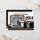 Varsity Stripe with Trumpet Graduation party invitation avec photo accentuée en orange. Personnaliser pour tout diplôme collégial, universitaire ou secondaire. Modifiez le texte pour répondre à vos besoins. Ajoutez également des informations au dos de l'invitation.