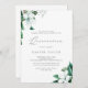 Cette invitation à la verdure des bois Quinceañera est parfaite pour une fête d'été ou d'automne 15ème anniversaire. Le design boho moderne comprend des feuilles d'eau vert émeraude, sauge et olive luxuriants et des botaniques avec des sprigs de fleurs blanches élégantes.