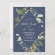 Cette invitation de brunch marine à l'automne verdoyante est parfaite pour une douche mariage de automne. Le design rustique moderne présente des feuilles bleu marine, vert sauge et or avec des branches de fleurs bleu foncé.