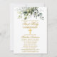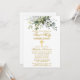 Moderne Elégant Première Sainte Communion Invitation inclut des feuilles d'eucalyptus aquarelle et d'autres beaux feuillage botanique verdoyant. Croix d'or.