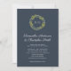 Cette belle faire-part de mariage dispose d'une couronne de verdure luxuriante dans un vert olive vif et turquoise foncé. Personnalisez avec votre monogramme à l'intérieur de la couronne.