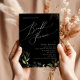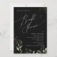 Entrez dans un monde enchanteur avec notre verdure fantaisiste et notre or | invitation à la douche nuptiale noire, parfait pour votre douche nuptiale botanique de printemps. Décorée d'eucalyptus vert sauge et d'accents dorés, cette invitation exhale élégance et fantaisie moderne. Imaginez vous promener dans un jardin d'été magique, entouré par les sons apaisants de la nature. Le design saisit sans effort le charme rustique de l'automne avec ses teintes vert clair, évoquant la beauté de la saison changeante. Avec une touche de sophistication minimaliste et une touche bohème classique, les détails chatoyants de la feuille d'or ajoutent une touche de glamour et de romance. Complète avec une atmosphère de conte de fées gracieuse, cette invitation exsude classe et met en valeur la splendeur naturelle de l'automne. N'hésitez pas à nous contacter pour toute question sur le design, et laissez-nous vous aider à faire le mariage de vos rêves.