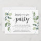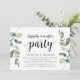 Carte d'invitation sur le thème de la verdure rustique moderne avec écriture noire (avec le titre de la carte : Happily Ever after party). Elle est parfaite pour votre réception de mariage intime ou pour votre fête de célébration après le mariage. Ajoutez vos détails dans la même police / lettrage noir.