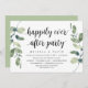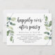 Carte d'invitation thématique Moderne Rustique Verdure Eucalyptus, écriture noire (avec titre de carte : fête pour toujours heureux). Elle est parfaite pour votre réception de mariage intime / fête de célébration après le mariage. Ajoutez vos détails dans la même police / lettrage noir.