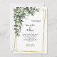 Un beau cadre doré avec verdure et fleurs blanches sur cette faire-part de mariage. Personnalisez tous les champs pour en faire votre propre.