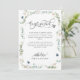 Annoncez à votre famille et à vos amis la grande nouvelle de votre mariage avec cette élégante carte "Nous sommes mariés". N'hésitez pas à ajouter votre propre message, le nôtre est juste un exemple. Design avec des détails de calligraphie manuscrite moderne et une exquise verdure aquarelle dans des tons sauge, vert, bleu et cuivre entourant vos détails. Dos de la carte avec des détails floraux délicats dans les coins et un logo décoratif élégant avec les noms complets de la mariée et du marié au centre.