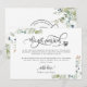 Annoncez à votre famille et à vos amis la grande nouvelle de votre mariage avec cette élégante carte "Nous sommes mariés". N'hésitez pas à ajouter votre propre message, le nôtre n'est qu'un exemple. Détails de calligraphie manuscrite et superbe design floral aquarelle avec feuillage entourant votre message. Feuillage et fleurs dans des tons de sauge, vert, bleu poussiéreux, bleu marine et cuivre. Dos de la carte avec de délicats éléments de verdure dans les coins et un logo décoratif élégant au centre avec les noms complets de la mariée et du marié.