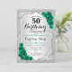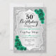 Invitation à la fête du 50e anniversaire. Elégant design floral vert émeraude avec rose. Fonctionne des bandes d'argent de parties scintillant fausse et des polices de script. Idéal pour une célébration anniversaire féminine élégante. Peut être customisé pour n'importe quel âge ! Invitations Zazzle imprimées ou téléchargement instantané modèle imprimable numérique.