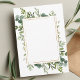 Cette invitation vierge présente une végétation de eucalyptus aquarelle peinte, des feuilles vertes et un cadre rectangulaire doré faux.