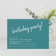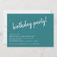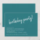 Invitations décontractées et mignonnes de fête d'anniversaire avec titre "fête d'anniversaire !" texte dans une police de script. Texte blanc sur un arrière - plan turquoise. Peut être changé à n'importe quel âge.
