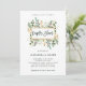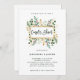 Cette magnifique invitation à la douche en couple mariage de Noël comprend des vacances vertes et feuilles avec des feuilles en faux or et des baies rouges sèches, et un cadre en or central sur un arrière - plan blanc moderne. La typographie de script "couple douche" est très tendance.