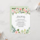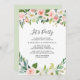 Cette élégante invitation à la fête fleurie et verdoyante est parfaite pour une fête tropicale. Le design est composé de roses blancs, roses et roux peints à la main et d'une touche de verdure, ornant des cadres géométriques dorés, inspirant la beauté artistique. Cette invitation peut être utilisée pour une fête de fiançailles, une fête de retraite, un baby shower ou tout événement!
