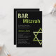 Une invitation moderne de Mitzvah de barre qui comporte la barre Mitzvah de mots à l'étoile de David supérieure et verte. RSVPs assorti disponible -