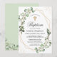 Invitation Vert Eucalyptus Baptême géométrique Christening