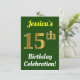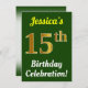 Invitation Vert, Faux Or 15e anniversaire Célébration + Nom