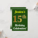 Ce design d’invitation à la fête d’anniversaire comporte un message comme "15e anniversaire de Jessica!", où le nom peut être personnalisé, et où le numéro "15e" a un faux aspect doré. Il dispose également d'une arrière - plan de couleur verte. Les détails de l'événement sur le dos peuvent être personnalisés. Il pourrait être utilisé pour invitation des gens à la fête du quinzième anniversaire ou à la fête d’anniversaire de quelqu’un. [~Z0000121]