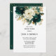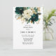 Elégantes pivoines d'aquarelle verte et blanche avec feuilles de feuillage faux or. Les invitations correspondantes et les fournitures pour les mariages sont disponibles dans cette suite de collection.