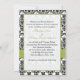 Cette invitation serait parfaite pour un mariage orienté vert et noir de poire, mais fonctionnerait également grand pour une partie du bonbon 16, ou le bat mitzvah. Le texte et le papier est tout personnalisable. Si vous avez besoin de n'importe quels autres articles assortis, envoyez-svp moi votre demande.