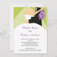 Commencez votre événement outre de la droite avec notre jeune mariée et marié à la mode de silhouette sur verte et blanche invitation nuptiale de douche d'arrière - plan pointillée par polka. Customisez juste notre invitation avec votre information de mariage et vous êtes tous placez pour aller. ©Jessica Weible