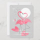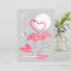 Un couple de flamants roses avec des cous courbés pour former un cœur se tiennent dans la mer sur une plage éclairée par la lune. Un design élégant et romantique avec une touche rétro créé dans une palette de couleurs rose, gris et blanc avec un fond changeant de couleur. Un design personnalisable pour que vous puissiez le personnaliser avec votre propre texte, images et idées. Une image d'art numérique originale.
