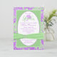 Cette gorgée de lavande violette, verte et blanche, lumineuse et joyeuse, présente une invitation baby shower pour une jeune fille avec de grandes fleurs de type pivoine ou rose sur elle, avec un ruban vert menthe IMPRITED et des bijoux en cristal IMPRITED. Il y a une petite image de parapluie violet sous le texte Sip et Voir. Le texte et le papier sont tous personnalisables. On le voit ici sur le papier de base. Je n'utiliserais PAS d'or métallique, ni de papier argenté, car ils assombrissent/modifient fortement la couleur de la carte.***VEUILLEZ NOTER que si vous modifiez la police ou la taille de la police, cela peut modifier la façon dont votre invitation imprime. Il imprimera la façon dont vous la voyez sur votre moniteur, donc si vous avez des problèmes d'alignement, ou de dimensionnement, veuillez me contacter pour obtenir de l'aide avant de commander. Je ne verrai pas votre invitation une fois que vous l'aurez commandé, et Zazzle ne modifiera rien (fautes de frappe, alignement, etc.). Si vous avez besoin d'aide ou souhaitez obtenir d'autres articles correspondants, veuillez envoyer votre demande par courriel à niteowlstudio@gmail.com.
