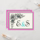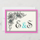 Vigne fleurie noir rose turquoise faire-part de mariage, avec une vigne noire avec des fleurs au centre bleu turquoise, une double bordure noire et rose chaud et une police de caractères élégante sur ivoire/écru arrière - plan. Un design contemporain et floral avec une touche vintage, parfait pour un mariage de printemps ou d'été moderne ou traditionnel. Ce design élégant peut être utilisé pour d'autres occasions spéciales telles que des anniversaires, des fiançailles ou des anniversaires.