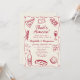 De style rétro, le design de cette fête, de style fantaisiste et fantaisiste, présente une couleur rouge vif classique, un cadre ondulé ludique et des illustrations de la cuisine italienne. Associé à d'élégantes polices de caractères à la main, ce design est parfait pour ajouter une touche de vintage allure à votre événement. Idéal pour des dîners de répétition, des douches pour couple ou des douches nuptiales, surtout pour ceux qui ont pour thème la pizza ou les pâtes.