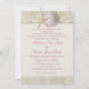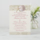 Invitation de mariage vintage Beach avec un arrière - plan en ivoire, de la dentelle d'ivoire et un texte rose doux. Dollars de sable et étoiles de mer et l'aspect rustique de burlap, personnalisez le texte et les polices pour convenir à votre style.