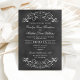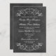 Des tourbillons décoratifs et des fleurs encadrent cet élégant design de faire-part de mariage d'inspiration vintage. Arrière - plan rustique noir tableau noir texturé avec texte et design blanc. Personnalisez le texte personnalisé pour votre cérémonie de mariage et réception.