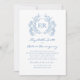 Invitation Vintage bleu Floral Crest Monogramme Mariage