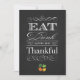 Invitations élégantes et démodées à un dîner de Thanksgiving ou toute occasion de vous en remercier. Le texte sur le devant dit : "Mange, Bois et sois reconnaissant." Le texte à l'envers est entièrement personnalisable. La belle finition antique est vintage américaine.