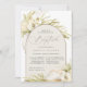 Le baptême tropical chic ou les invitations à baptême dans une palette de couleurs neutres séduisantes comprennent un élément central voûté portant vos détails de cérémonie et de fête de l'église, accentué de frondes de palmier vert pâle, de feuillage de l'île de la plage, d'orchidées blanches, de botaniques secs et de pampas herbe.