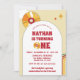 Célébrez le premier anniversaire de votre petit bout de chou avec style grâce à notre invitation anniversaire enfant rétro jaune vinyle Groovy 1ère année. Cette invitation vibrante présente un fond rayé jaune soleil et orange qui donne le ton pour une célébration festive et joyeuse. Sur le côté, un graphique de CD vinyle apporte une touche nostalgique, capturant parfaitement l'essence d'une fête sur le thème rétro.
