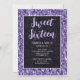 Personnalisez et customisez l'invitation fausse moelleuse Sweet 16. Collection de sweets sixteens par PLdesign. Parties scintillant violette faux brillant scintille. Belles parties scintillant brillantes violet girly glamour brillant. Photo de parties scintillant violet mousseux ! Faux scintille !