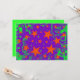 Invitation avec un arrière - plan tourbillonnant violet et vert parsemé d'étoiles magiques, brillantes orange et vert. Un design personnalisable violet, vert et orange pour vous permettre d'ajouter vos propres textes, images et idées. Le texte peut facilement être modifié à l'aide du modèle fourni ou cliquez sur le bouton "Customiser" pour effectuer d'autres modifications. Enveloppe correspondante et timbre postal disponible. Créé à l'aide de techniques numériques par Jess Perry.