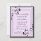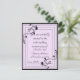 Nouvelle série de stylistes fixes pour toutes vos invitations et vos besoins faire-part. Cette élégante invitation est faite en lavande et en noir, avec un design de vigne noir sophistiqué sur le cadre extérieur. Customisez en changeant le texte à tout ce dont vous avez besoin, à l'avant et à l'arrière. Très formel et élégant.