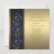 Élégantes cartes d'invitation de mariage avec des violettes de gentiane cristallines violettes et une bordure dorée pour la célébration des 50 ans de mariage. Personnalisez le recto et le verso.