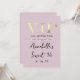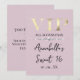 Cette invitation de fête personnalisée présente un design VIP glamour sur un fond rose doux. Le titre VIP est imprimé dans une police de style feuille d'or, suivi du titre de l'événement. Une bande de diamants sépare le texte. Le lieu et l'heure de la fête ou de l'événement sont imprimés au dos. C'est parfait pour un anniversaire, un sweet 16, une douche de mariée ou une autre célébration élégante.