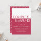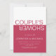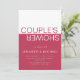 Cette invitation wedding shower contemporaine présente un design élégant et élégant, incorporant des vibva magenta et des blocs de couleurs blanches. La partie supérieure de l'invitation est ornée d'une teinte blanche, tandis que la partie inférieure présente une teinte magenta captivante. Le terme 'COUPLE'S' est inscrit avec grâce dans une police rose fushia frappante sur le bloc blanc, tandis que 'SHOWER' est écrit de façon créative à l'envers en utilisant une police blanche sur le bloc magenta. L'esthétique minimaliste est renforcée par l'utilisation d'une police de caractères propre et sobre. Sur le dos, les initiales du couple sont élégamment affichées en blanc contre un arrière - plan magenta captivant.