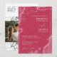 Cette invitation comprend une carte de voyage d'art de destination vintage rétro avec une calligraphie élégante et une police de typographie simple dans un arrière - plan viva magenta avec une photo et QR Code. La simplicité et le design propre de cette invitation fonctionne bien avec un thème de voyage mariage, un mariage de destination, ou tout thème mariage et certainement un grand ajout à votre mariage. Il suffit de customiser les noms et le libellé en quelques étapes simples et personnaliser la carte d'invitation avec votre photo du couple heureux et entrer le code QR avec le vôtre à l'arrière de l'invitation pour donner à votre invitation une touche personnelle agréable. Remarque : L'illustration rétro vintage de la carte de voyage de destination et le libellé de "Vous êtes invité au mariage de" et l'élégant script de calligraphie de "et" et "Réception à suivre" sur le devant ET le "gentiment" RSVP sur le dos ainsi que les lignes sur le devant et le dos et d'autres éléments d'illustration graphique ne peuvent pas être modifiés, déplacés, ou supprimés, Ils sont corrigés. Si vous devez modifier la couleur, vous pouvez customiser la carte d'invitation. Vous pouvez customiser et personnaliser l'invitation afin de répondre à vos besoins mariages et cliquez simplement sur personnaliser de l'invitation. Vous pouvez facilement personnaliser l'invitation avec le texte comme un téléchargement numérique et l'envoyer électroniquement et le partager avec vos invités par SMS, email, ou médias sociaux. Ou vous pouvez également choisir de poster l'invitation concernant vos détails à vos invités. Ou vous pouvez obtenir les deux — invitation imprimée et obtenir l'invitation sous forme numérique en téléchargement instantané.