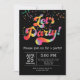 Préparez-vous à célébrer avec cette invitation verticale lumineuse et colorée "Vive la fête !". Avec son texte à l'aquarelle arc-en-ciel vibrant et ses confettis festifs sur fond sombre, c'est parfait pour tout anniversaire animé, remise de diplôme ou événement spécial.