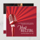 Graphic style rétro chrome microphone graphiques et lignes de projection vocale avec votre propre photo ou photos sur le récital vocal inverse invitations rouge et blanc. Parfait pour les familles et les amis invitations à voix, chanter ou micro ouvert, musical ou récital de conférencier. Customisez avec les détails de votre événement. © Design unique et illustration de Sarah Trett pour www.mylittleeden.com (retour photo de Obie Fernandez sur Unsplash).