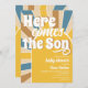 Voici l'invitation du baby shower fils. Modèle d'invitation rétro pour vous de personnaliser pour l'événement parfait. invitation super pour baby shower à thème rodéo. Invitation hippie avec rayons du soleil. Invitation Sun a éclaté conçu numériquement. Découvrez des articles similaires sur le thème de l'arc-en-ciel en visitant Ici vient la collection de baby showers fils.
